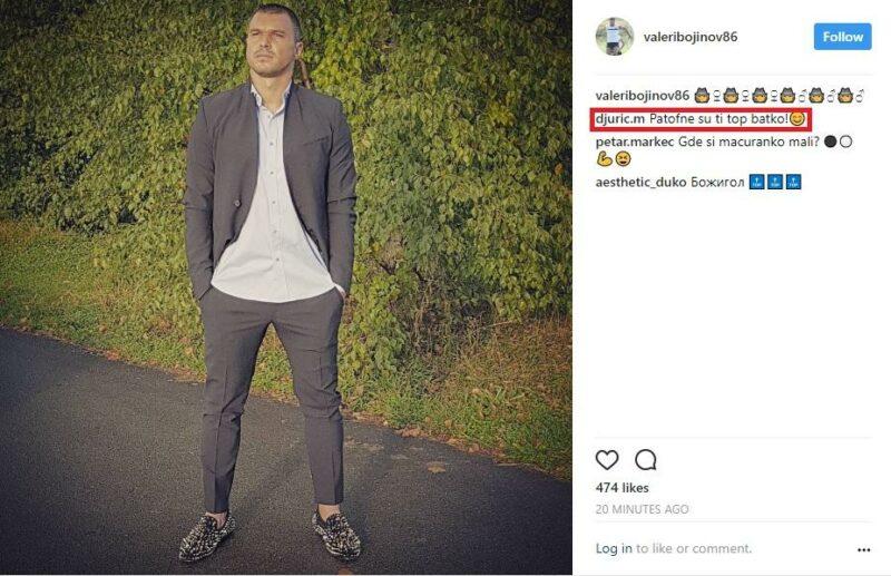 Божигол пусна две снимки, но които позира, облечен с костюм и ръце в джобовете, но не там се спираха погледите на почитателите му. Българинът бе обул странни черни обувки, които са в тон с подобни на половинката му Биляна.