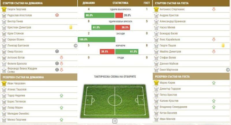 През втората част Славия успя да върне едно попадение. В 68-ата минута Васев центрира в наказателното поле, а Радослав Апостолов с глава вкара в собствената си врата.