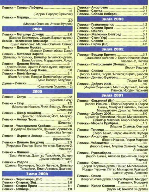 Точно преди една година Левски се изправи срещу бъдещия шампион на Румъния Виторул (1:2), игра с унгарския гранд Дожа Уипещ (2:1) и направи 1:1 със сръбския Пар-тизан Белград. Останалите две контроли бяха с руския елитен УФА (1:0) и коравите чехи от Теплице (0:1). Резултатите в споменатите по-горе мачове показват, че Левски е бил равностоен на тези класни отбори и с други думи – „сините“ са направили отлични тестове преди официалните мачове.