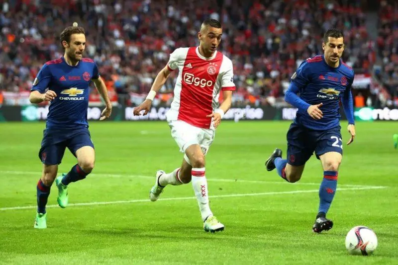 Първата възможност на днешния мач в Стокхолм се отвори пред Фелайни в 9-та минута, но той изтърва от непосредствена близост След още 9 минути обаче Пол Погба откри резултата след слаб, но коварен удар по земята. В 24 -та минута Антонио Валенсия стреля силно, но вратарят на Аякс отрази.