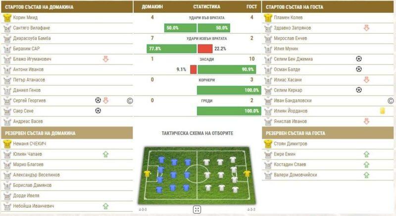 През втората час Верея имаше по-добрите възможности да стигне до трите точки. В 55-ата минута Керкар стреля, но топката среща дясната греда. В 73-ата минута отново той нанесе мощен удар, Миид с една ръка изби и топката за втори път срещна гредата, този път – напречната. В 82-ата минута логичното се случи. Бен Джемиа засече центриране в наказателното поле за крайното 2:3. Това осигури първото място в група „А“ на Верея, без значение от мача на Ботев (Пд) със Славия.