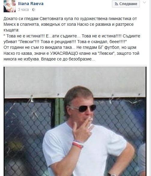 Легендата на Левски Наско Сираков е бил силно афектиран от съдийството в мача с Верея, загубен от „сините“ с 0:2. Неговата съпруга Илиана Раева разкри за емоциите му по време на поражението от старозагорци. Ето какво написа половинката на Сираков на профила си във Фейсбук: