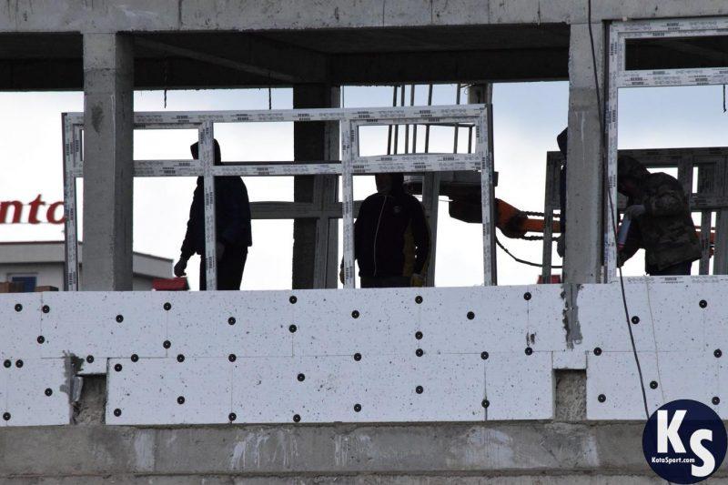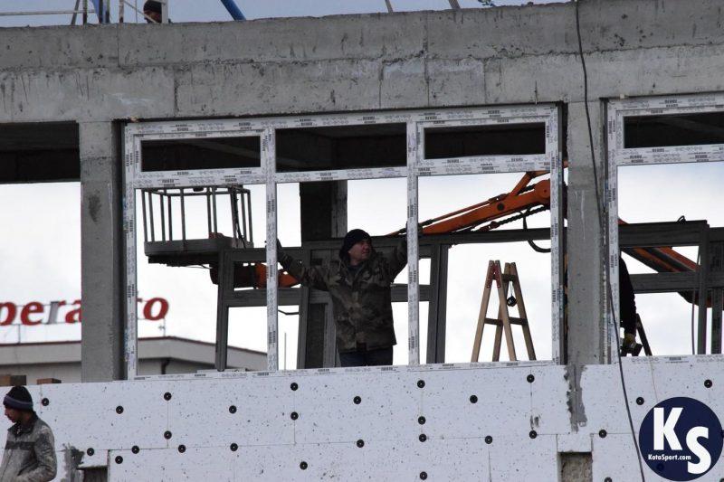 завършен. В момента тече поставянето на външната изолация. Дограмата на съоръжението е поставена. Работници монтираха и необходимите крепежни елементи за поставянето на козирката.
