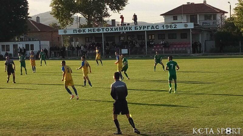 Поморие спечели по категоричен начин регионалното дерби с Нефтохимик. Воденият от легендата на „шейховете“ Веселин Бранимиров тим се наложи като гост с 3:1. Крайният победител в двубоя, игран на стадиона в Българово, бе решен още през първото полувреме, когато поморийци водиха с класическото 3:0.