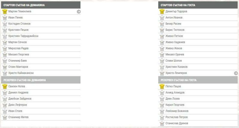 Първото полувреме голови положения почти липсваха. След половин час игра Мирослав Радев засече с глава центриране от фаул на Баев и топката спря в мрежата. Попадението обаче бе отменено заради засада. В 40-ата минута Михаел Орачев отправи топовен изстрел извън наказателното поле, но Теменлиев изби отиваща под гредата му топка. В даденото продължение пък Расим отблизо прати топката над вратата.