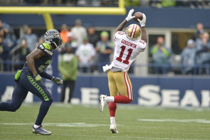 Marquise Goodwin was emotional after this TD. He lost his son this morning to a premature birth. Can only imagine the emotions he was feeling. Thoughts and prayers are with @flashg88dwin pic.twitter.com/mTWwR0V1KJ