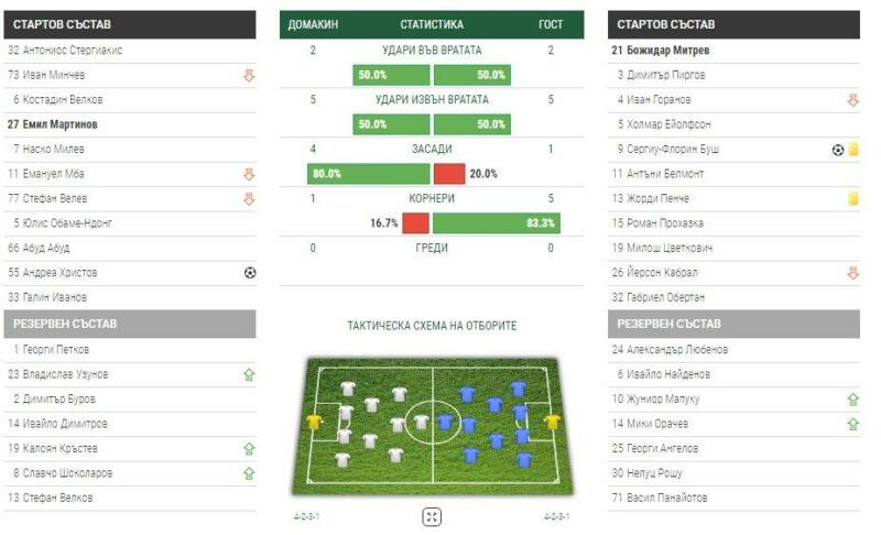 Момчетата на Делио Роси има за какво да съжаляват, тъй като допуснаха попадение във вратата си в 82-ата минута, когато се разписа Андреа Христов. Той се възползва от грешка в „синята“ отбрана и фиксира крайното 1:1. Точен за Левски пък беше Серджиу Буш. Румънският стрелец откри резултата още в 17-ата минута, но това не се оказа достатъчно на Левски да вземе мача.