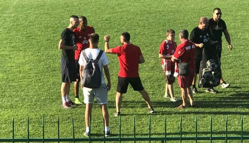 Привържениците изгледаха заниманието на червените, което премина в отлично настроение. Всички в отбора са амбицирани да запишат пета поредна победа в шампионата и тренират на пълни обороти.