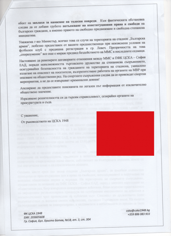Ето и обръщението на ЦСКА 1948, както и изпратеното до ММС писмо:
