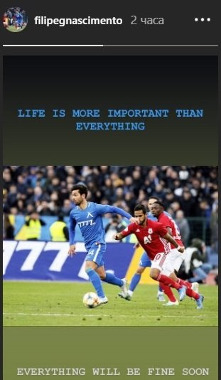 Български футболЛевскиПърва професионална лига Ас на Левски: Животът е по-важен от всичко! (СНИМКА) от Желязко Велков - 13.03.2020 0 FacebookTwitterPinterestWhatsApp - - Филипе Нашименто коментира отлагането на футболния ни шампионат с един месец. Халфът на Левски публикува в Инстаграм своя снимка от дербито с ЦСКА-София. „Животът е по-важен от всичко! Скоро всичко ще бъде наред!“, написа Нашименто към снимката.