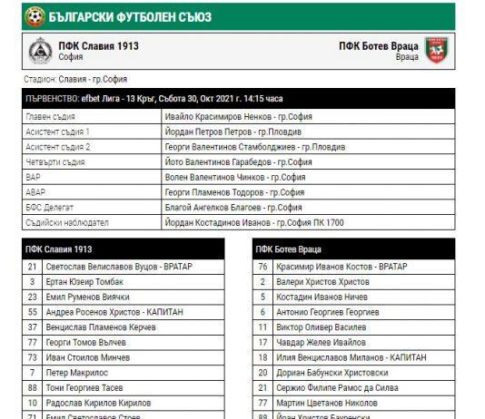 СЪСТАВИТЕ: Славия – Ботев Вр