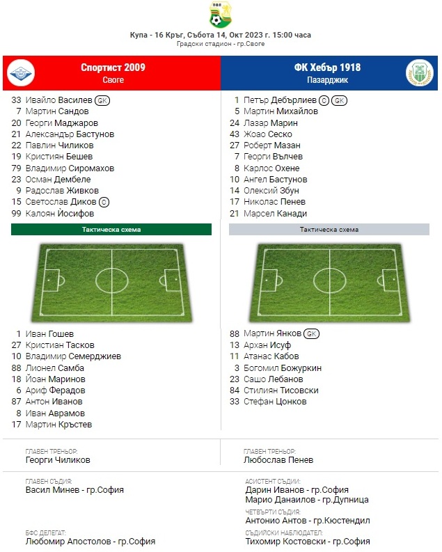 Хебър се класира за 1/8-финалите в турнира за Купата на България. Воденият от Любослав Пенев тим се наложи с 1:0 като гост на Спортист.