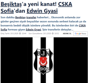 През последните месеци футболиста на ЦСКА-София Едвин Джеси постоянно е свързван с трансфер в турския гранд Бешикташ. Клубът от Истанбул до този момент отричаше за интерес към ганайското крило, но все пак представител на Бешикташ потвърди пред „Sabah“, че 28-годишният футболист попада в трансферните планове на отбора.