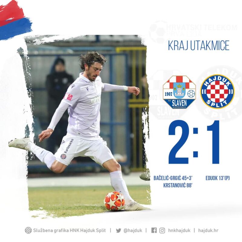 Българският национал Кристиан Димитров дебютира за Хайдук (Сплит), но отборът му загуби с 1:2 гостуването си на Славен Белупо и записа първа загуба под ръководството на Игор Тудор. Бившият защитник на Ботев (Пловдив) беше титуляр и остана на терена през всичките 90 минути.