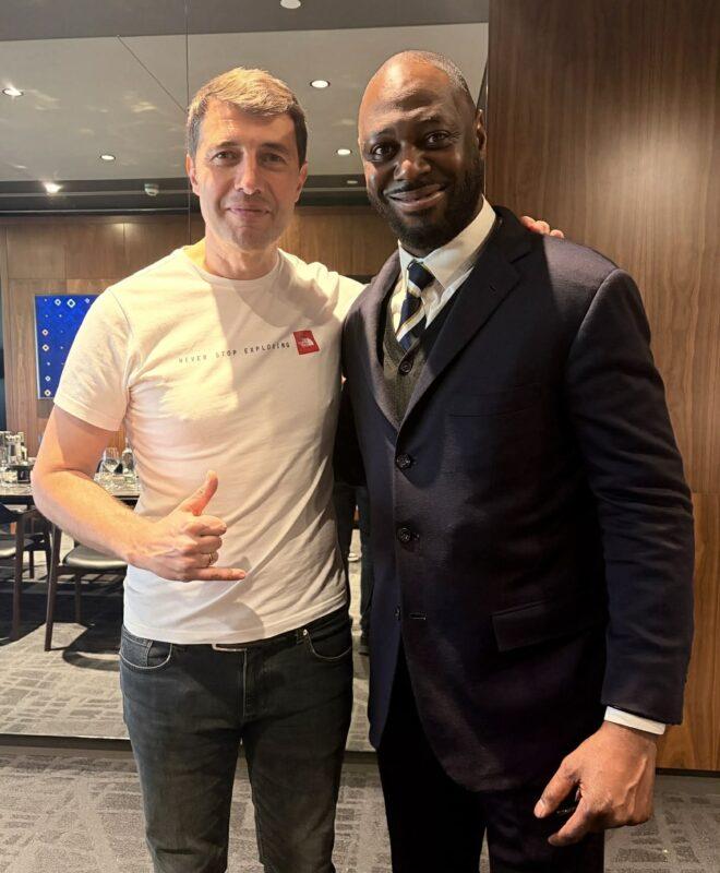 След двубоя Евтимов успя да се види с бившия играч и мениджър на „шпорите“ Крис Хютън.