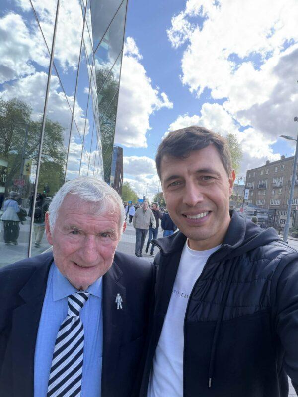 На стадиона на Тотнъм Кирил Евтимов се засече и с друга легенда на „шпорите“ Ледли Кинг, на когото подари традиционната брандирана торбичка на България с родни сувенири.