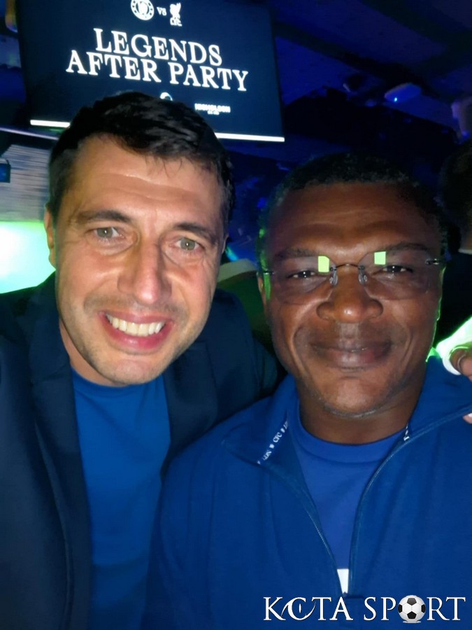 Легендите на световния футбол, носили екипа на лондонския гранд Челси – Марсел Десаи, Клод Макелеле и Роберто Ди Матео, показаха огромно уважение към България. Това се случи около благотворителния двубой между легендите на Челси и Ливърпул, игран в събота. Мачът завърши с победа на мърсисайдци, които надделяха с 1:0 на „Стамфорд Бридж“ чрез гол на Раян Бабел. Футболният пътешественик Кирил Евтимов, който бе специален гост за мача, успя да изненада Десаи, Макелеле и Ди Матео с подаръци и сувенири от България. И тримата с удоволствие позираха с получените дарове. Световният шампион Марсел Десаи веднага разпозна Кирил Евтимов. Двамата и преди са се виждали на големи мачове, а сега българинът дари на легендарния французин бутилка българско вино. Ди Матео от своя страна изпрати специални поздрави на бившия ни национал Петър Александров, от когото таи приятни спомени от съвместния им престой в швейцарския тим „Арау“.