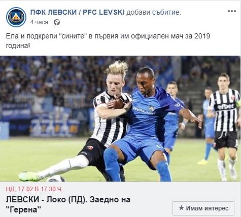 Български футболЛевскиПърва професионална лига Левски призова: Заедно на „Герена“! от Желязко Велков - 09.02.2019 0 FacebookTwitterPinterestWhatsApp - - Левски призова привържениците си за подкрепа в първия официален мач на отбора за 2019 г. В него „сините“ приемат Локомотив (Пд). Срещата е на 17 февруари (неделя), от 17:30 ч.