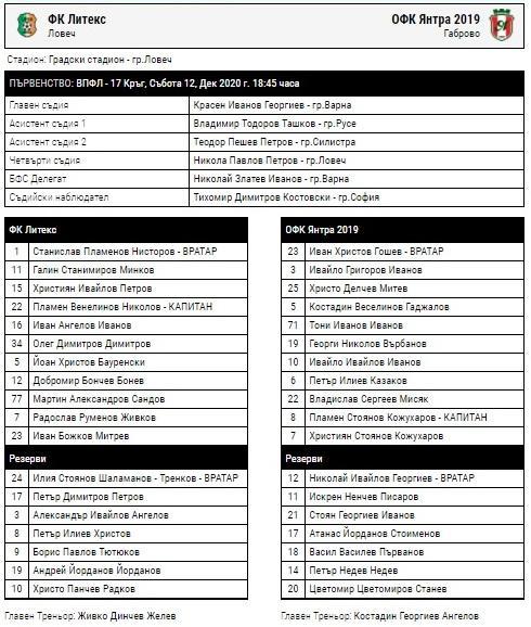 Литекс е девети в класирането с 20 точки, а Янтра остава на предпоследно място с едва 9 точки.