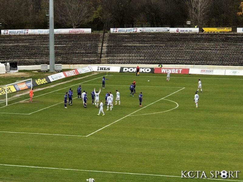 Преди почивката домакините бяха по-активни. Шансове се откриха пред Емил Стоев и Калоян Кръстев, но в 39-тата минута Преслав Боруков остана сам срещу Георги Петков, но опитният ветеран парира ударът му,като скъси ъгъла. Малко преди почивката травма получи ветеранът Георги Петков и той бе заменен от Светослав Вуцов.