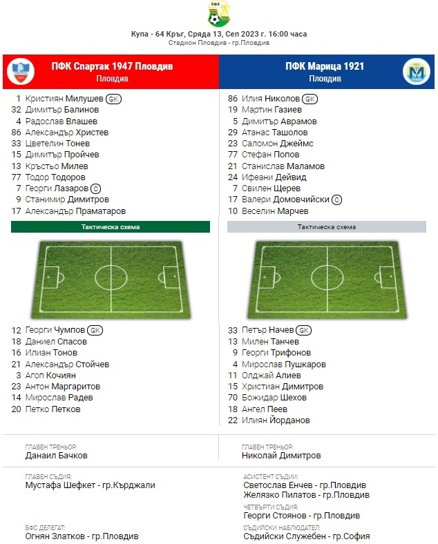 Марица победи Спартак в малкото пловдивско дерби и продължава напред в турнира за Купата на България. На стадион „Пловдив“ възпитаниците на Николай Димитров се наложиха с категоричното 5:0.