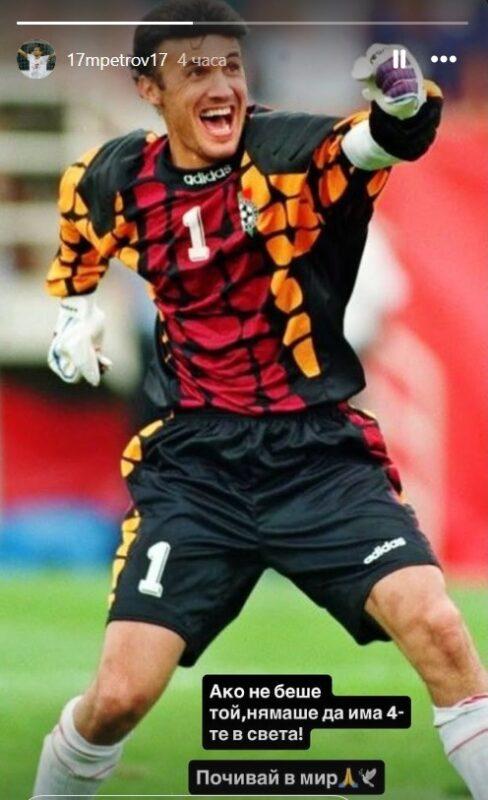 „Ако не беше той, нямаше да има четвъртите в света! Почивай в мир“, написа Петров в Инстаграм.