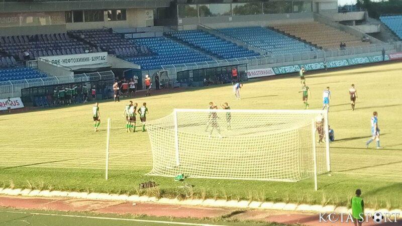 Чисто футболно първото полувреме бе на ниво. Нефтохимик успя да открие резултата още във 2-ата минута, след като завърналият се голаджия Диян Христов-Терминатора с глава засече центриране и опъна мрежата на акулите. В 29-ата минута Терминатора покачи на 2:0, а класическото 3:0 в 42-ата минута оформи друг опитен играч Цветан Филипов.