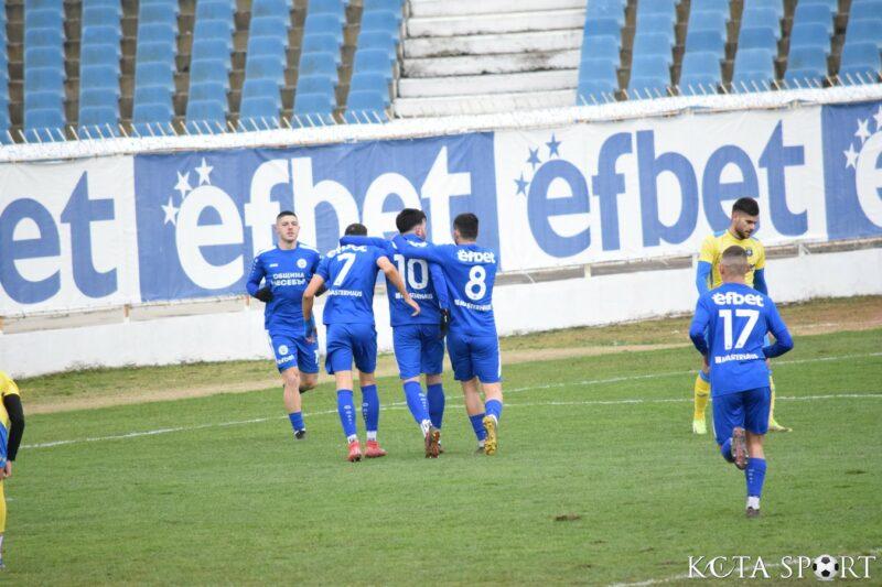 Никола Гелин откри още в 5-та минута с красиво попадение. Една минута преди края на полувремето Кунев центрира отдясно, а футболист на гостите си отбеляза автогол.