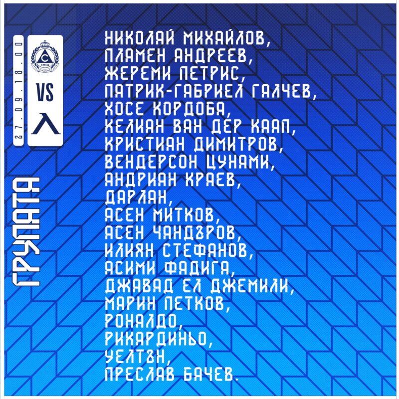 Български футболЛевскиПърва професионална лига Николай Костов определи групата на Левски за Славия от Желязко Велков - 27.09.2023 0 FacebookTwitterPinterestWhatsApp Снимка: levski.bg - - Група от 20 футболисти определи старши треньорът на „Левски“ Николай Костов за мача от 11-ия кръг на Първа лига срещу „Славия“. Двубоят на стадион „Александър Шаламанов“ е днес от 18:00 часа.