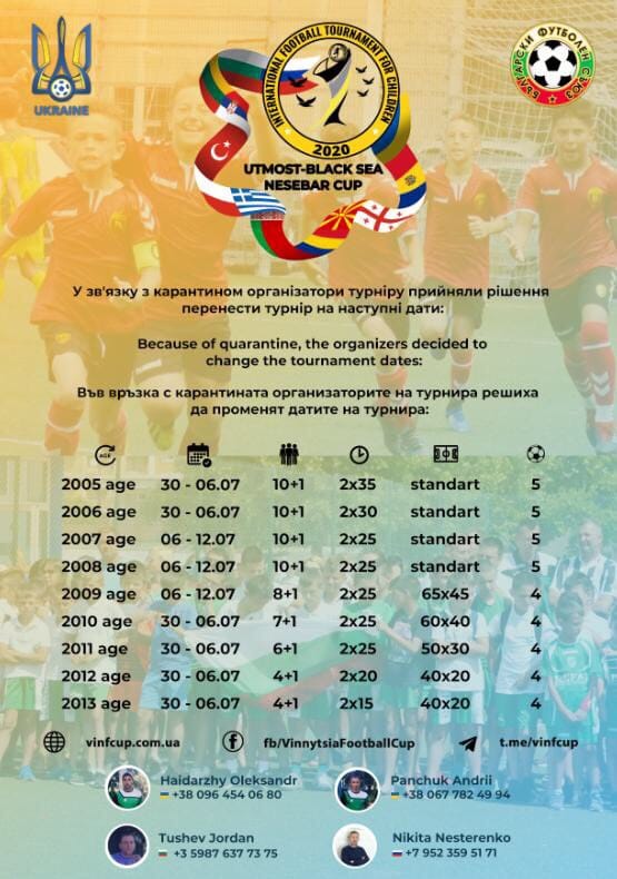 Ситуацията в страната заради пандемията от COVID-19 доведе до изместването с близо месец на най-големия детски футболен турнир край морето за предстоящото лято. Организаторите на “ Black sea -Utmost cup“ в Несебър преместиха надпреварата за периода между 30-ти юни и 12-ти юли. Тазгодишното трето издание е съвместно организирано от българи и украинци. Очаква се в него да вземат участие около 200 отбора от 10 страни, като половината са от Русия,Молдова и Украйна.