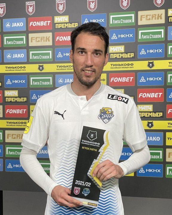 Бившият капитан на националния отбор, който ще се присъедини към Левски през лятото, влезе в игра за Сочи в 71-а минута и 13 по-късно реализира петото попадение за настоящия си клуб.
