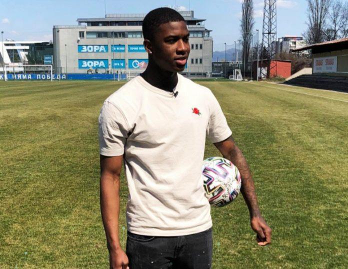 Найджъл Робърта си взе довиждане с бившите си съотборници след тренировката на „сините“ и позира с усмивка заедно с топката, с която реализира хетрик във вратата на Берое за Купата на България.
