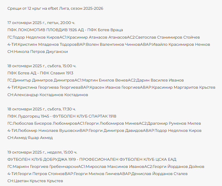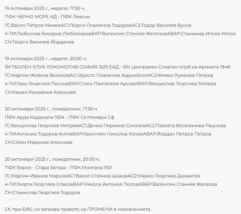 На ЦСКА в Добрич срещу Добруджа ще свири Мариян Гребенчарски, а съдия на Лудогорец – Спартак Варна на „Хювефарма Арена“ ще бъде Любослав Любомиров.