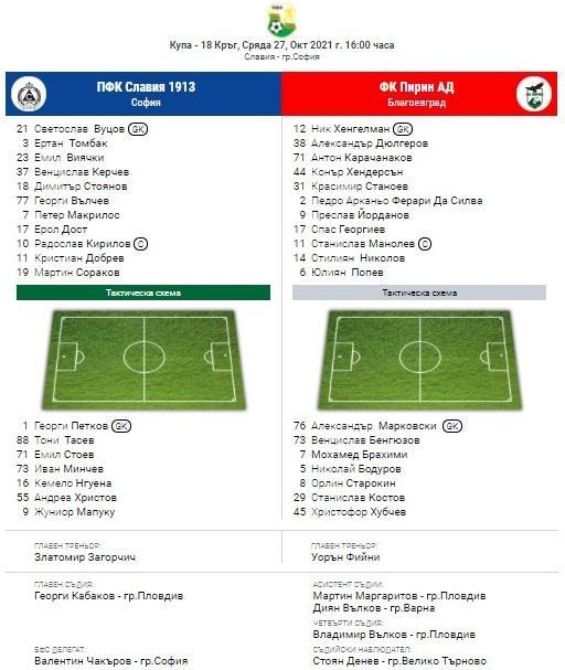 Славия приема Пирин днес от 16:00 часа в 1/8-финален двубой за Купата на България. Мачът ще започне с минута мълчание в памет на легендата на столичани и родния футбол Александър Шаламанов, който ни напусна на 80-годишна възраст.