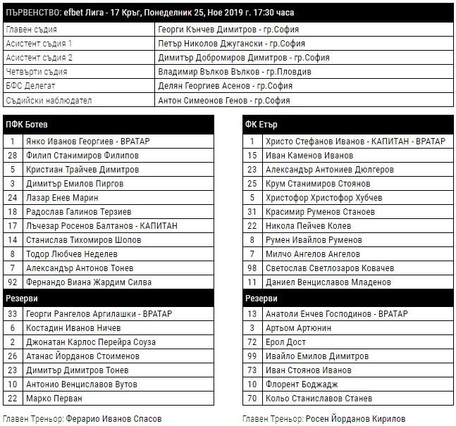 Ботев Пловдив посреща Етър в последния двубой от XVII кръг на efbet Лигата. „Канарчетата“ са в подем от смяната на треньора Желко Петрович с Ферарио Спасов. Първият мач под ръководството на Феро пловдивчани загубиха с 0:1 от Лудогорец, след което обаче събраха седем точки в 3 мача – реми с Арда и две победи (2:1 над Дунав и 1:0 срещу Левски). Така днес „жълто-черните“ ще търсят и трети пореден успех в шампионата.