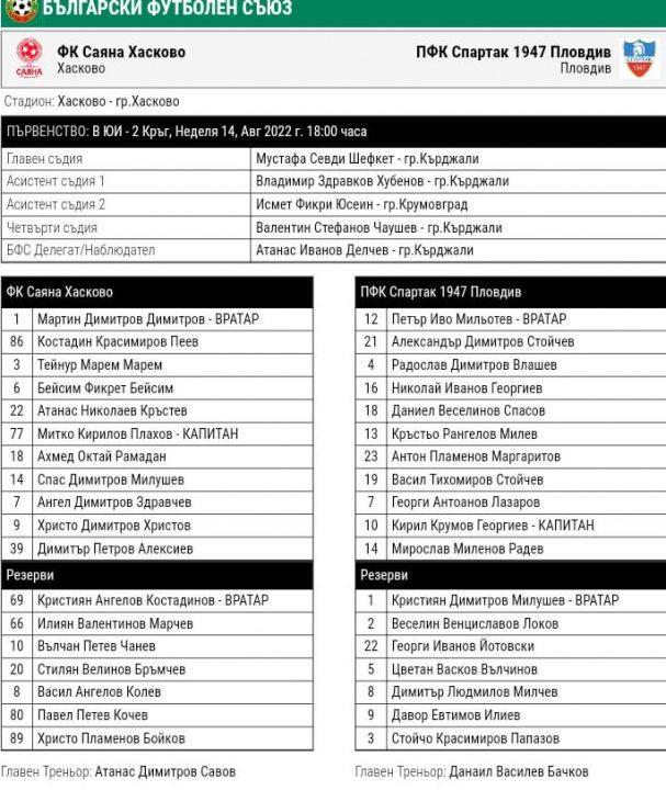 Футболистите на Саяна Хасково постигнаха инфарктна победа във втория кръг от първенството в Трета лига. Хасковлии се наложиха като домакини на Спартак (Пловдив) с 2:1.