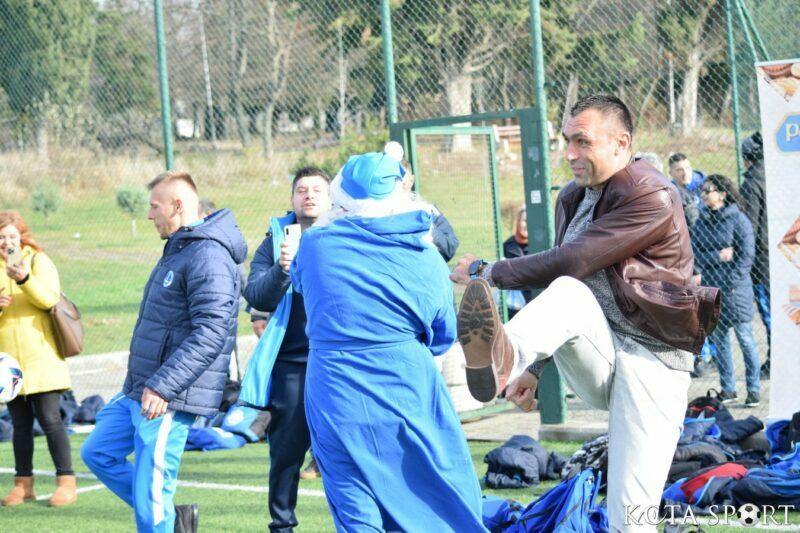 В шоуто ще се включиха децата от Детско-юношеската школа на „акулите“. Те демонстрираха своите футболни умения. Най-добрите на „крачета“ направиха по над 100 докосвания до топката, след което заслужено получиха награди. Шоуто не мина и без Дядо Коледа, който, естествено, беше в сини одежди. Той също демонстрира завидни футболни умения, като риташе подаръците към децата. А подаръците, повече от естествено, бяха… топки.