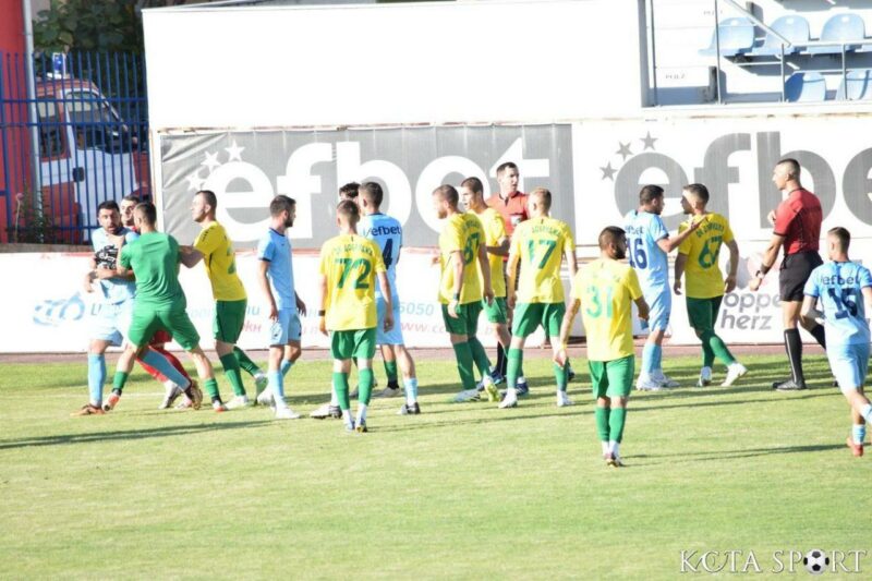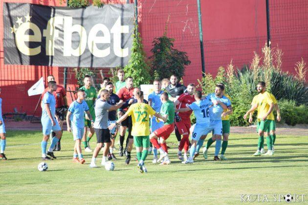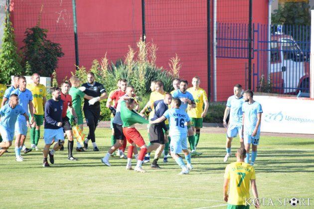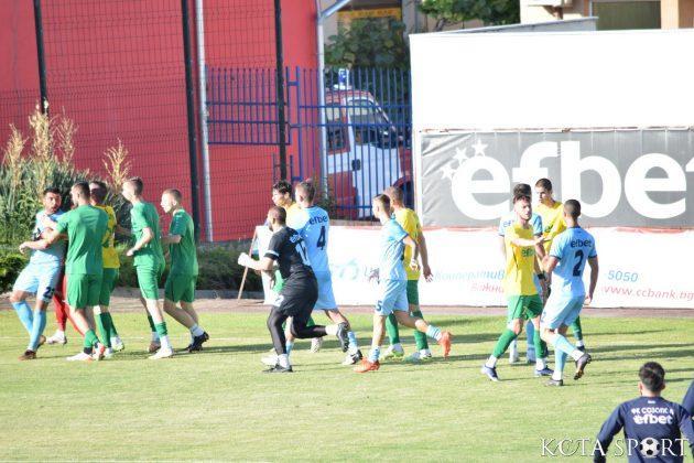 В 35-ата минута настана най-неприятният момент в двубоя. Съперникови футболисти си размениха реплики, което доведе до масово меле на терена. Наложи се двата щаба да влизат, за да успокояват страстите. В крайна сметка ситуацията приключи два червени картона за футболисти на тима от Добрич и един за домакините – на Деян Молдованов.