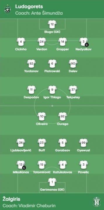 Български футболЛудогорецПърва професионална лига СТАРТОВИ СЪСТАВИ: Лудогорец приема Жалгирис по пътя към групите на ЛЕ от Желязко Велков - 18.08.2022 0 FacebookTwitterPinterestWhatsApp Снимка: ludogorets.com - - Лудогорец приема Жалгирис в първи мач от плейофите на Лига Европа. Двубоят на стадион „Хювефарма Арена“ започва в 20:45 ч. Ето и съставите на двата отбора: