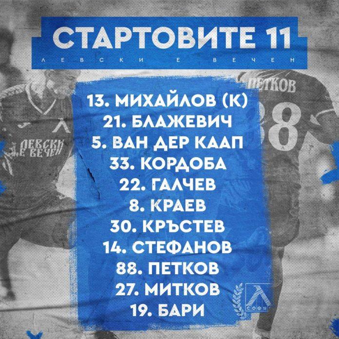 Левски: 13. Николай Михайлов, 21. Анте Блажевич, 5. Келиан ван дер Каап, 33. Хосе Кордоба, 22. Патрик-Габриел Галчев, 8. Андриан Краев, 30. Филип Кръстев, 14. Илиян Стефанов, 88. Марин Петков, 27. Асен Митков, 19. Билал Бари