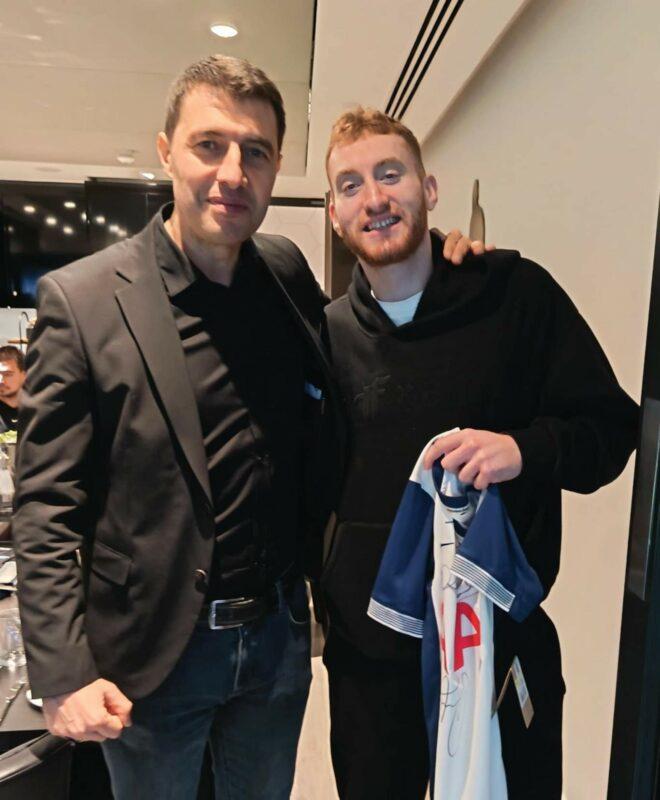 В ложите на „Тотнъм Хотспър Стейдиъм“ Евтимов се видя с шведския национал Деян Кулушевски от Тотнъм, който в момента лекува контузия на коляното. Етническият македонец изрази надежда, че „тре крунур“ ще спечелят баражите си за Мондиал 2026, за да може да играе на Световното първенство.