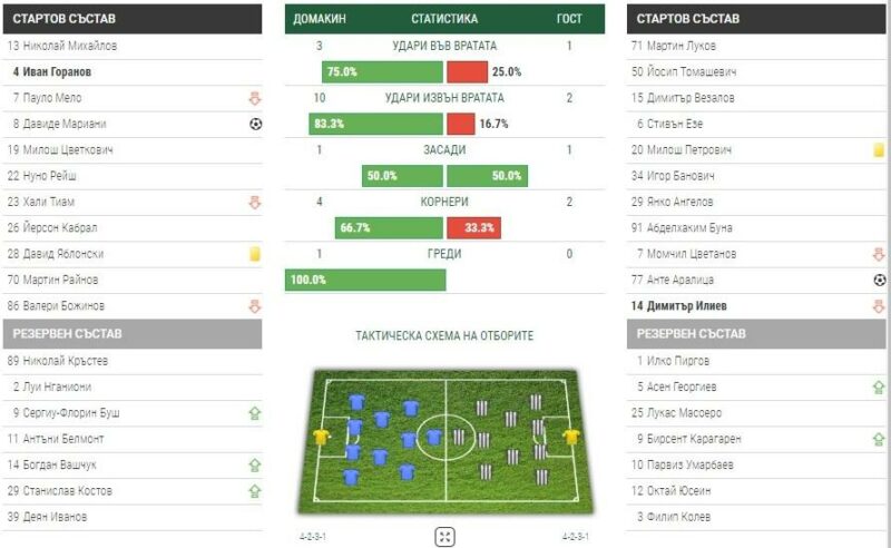 120 секунди по-късно Божинов прати топката в мрежата, но попадението бе отменено заради засада.