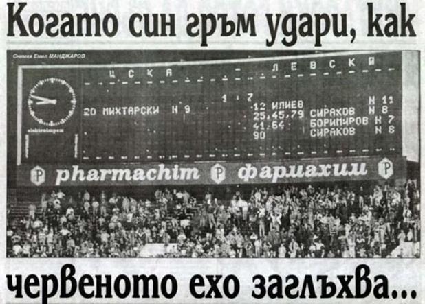 Преди вечното дерби в рубриката на вестник „Спорт“ – „Касандра – Пророчица“ се появява следният материал: „7:1 за ЦСКА срещу Левски пророкува за утре Кашпировски“. На „Васил Левски“ обаче се случва точно обратното на това, което твърди съветският медиум.