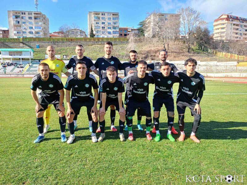 Гостите поведоха на стадиона в Сандански с първата си атака в мача. Точен бе Васил Димитров с удар отблизо.