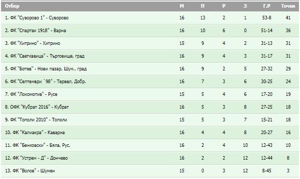 ФК „Ботев“ – Нови пазар, Шум., град  0:6 ФК „Спартак 1918“ – Варна