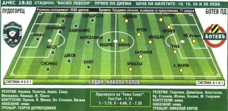 От друга страна, изглежда, че орлите вече са преситени на вътрешната сцена и цяла пролет играят много под Възможностите си. Качеството на продукцията им е далеч от оптималното ниво. Лудогорец едва ли ще може да вдигне оборотите до максимум точно за този мач. И в това се крие шансът на Ботев. Да се възползва от факта, че през пролетта разградчани свалиха нивото на играта си.